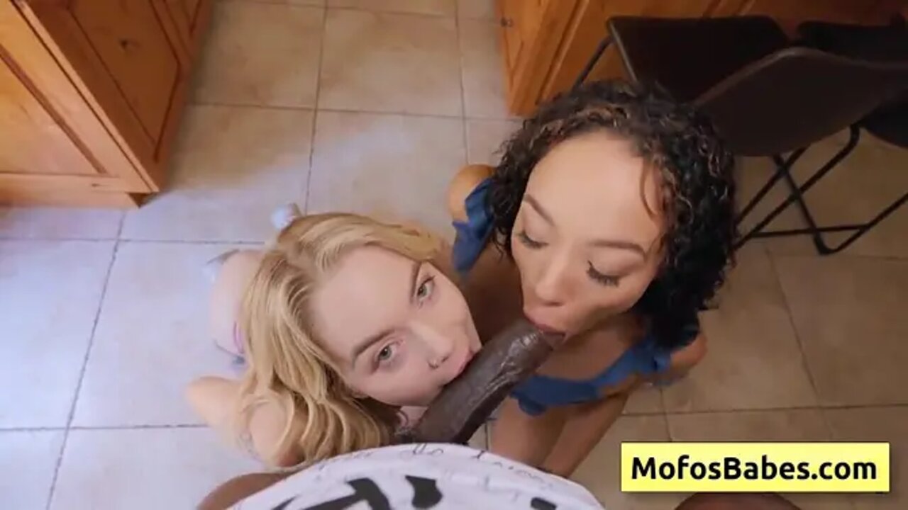 Busty ebony babe shares BBC with her blonde friend in POV hardcore threesome