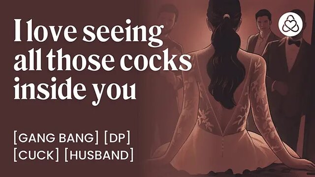 The new bride is dominated by three men in a steamy wedding night gangbang. She takes turns sucking, riding, and getting banged by each man. She cums hard with each climax as her husband watches and listens to the erotic ASMR audio.