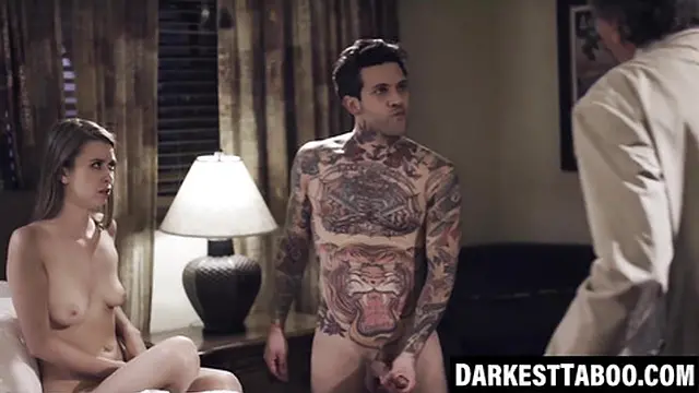 Teen stepsister double teamed by stepdaddy and stepbro