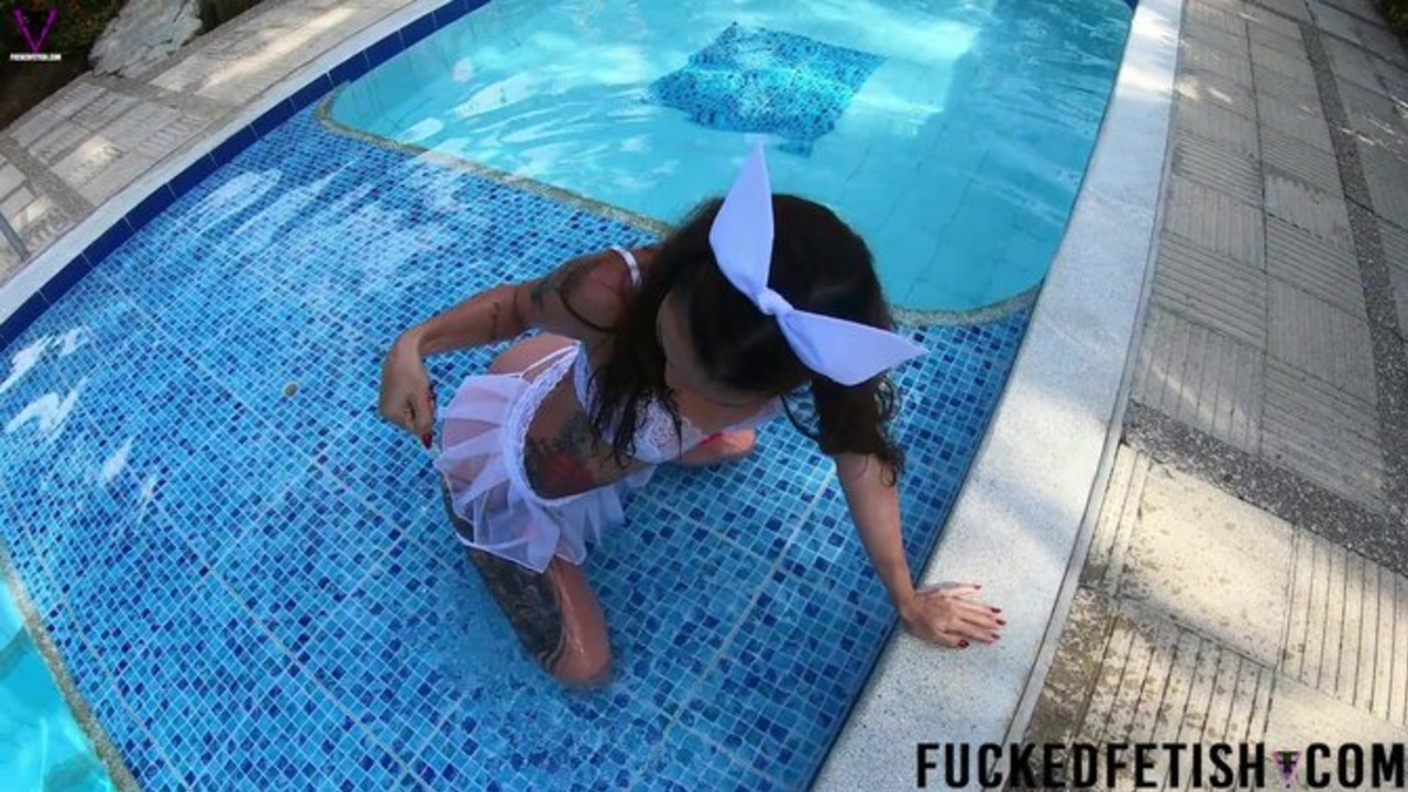 Yessica Bunny - Petite Latina Yessica Bunny gets wet in a pool with her two men